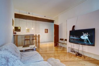 Апартаменты рассчитаны на 4х гостей: в спальне находится двуспальная кровать, в гостиной два кресла-кровати. Напротив кресел в гостиной - большой телевизор; также здесь городской телефон, цифровое телевидение и интернет.