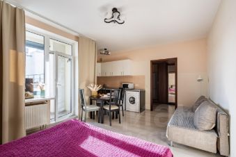 Студия для 2-4 гостей рядом с Невским проспектом в современном ЖК Царская столица. Панорамные окна лоджии.