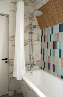 Современный санузел с душевой кабиной