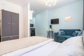 Современное оснащение: В студии есть все необходимое для комфортного проживания: новая мебель, полностью оборудованная кухня, высокоскоростной Wi-Fi, ЖК-телевизор, стиральная машина, фен.