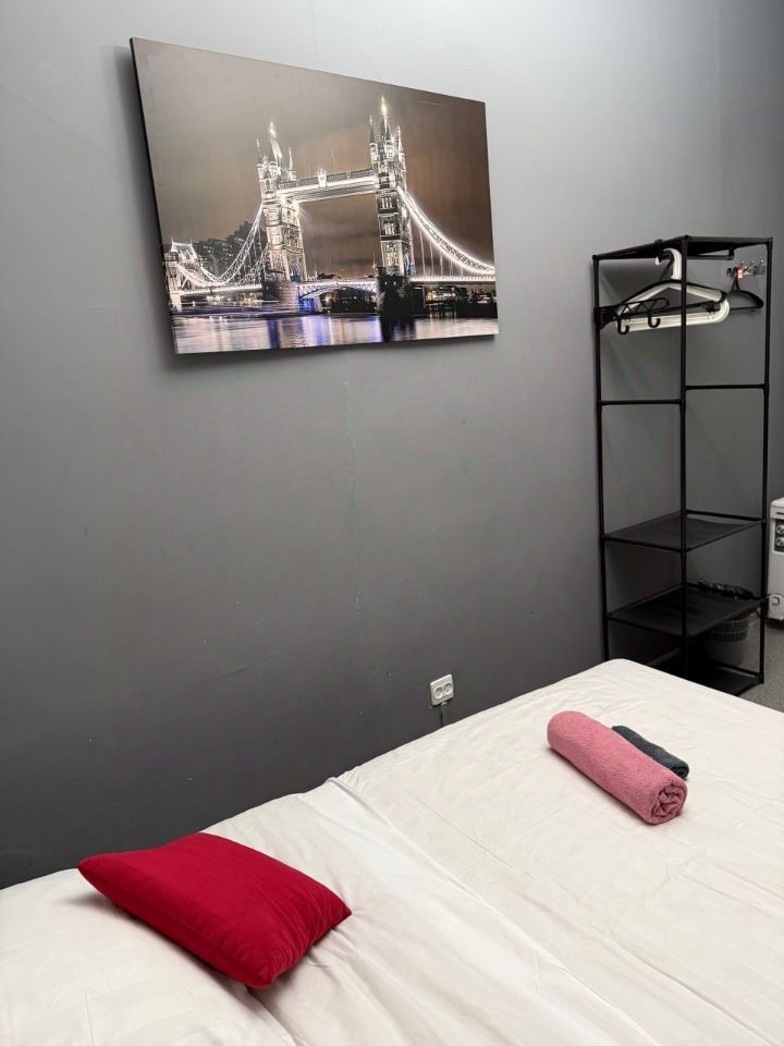 Двухместная комната расположена на 1 этаже с видом на тихий двор и оборудована всем необходимым для комфортного проживания: двуспальная кровать, постельное белье, по два полотенца на каждого гостя, комод, зеркало, телевизор. В общем доступе: ванная комната (душ, туалет, фен), кухонный уголок (микроволновка, холодильник, кулер с горячей/холодной питьевой водой), стиральная машина, утюг и гладильные принадлежности.
