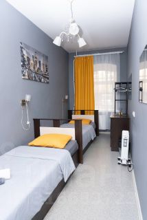 Двухместная комната с двумя раздельными кроватями расположена на 1 этаже с видом на тихий двор и оборудована всем необходимым для комфортного проживания: две раздельных кровати, постельное белье, по два полотенца на каждого гостя, комод, зеркало. В общем доступе: ванная комната (душ, туалет, фен), кухонный уголок (микроволновка, холодильник, кулер с горячей/холодной питьевой водой), стиральная машина, утюг и гладильные принадлежности.