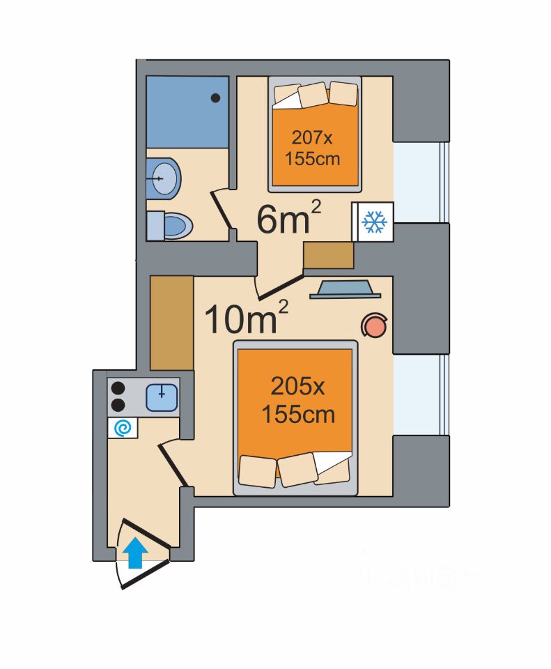 • функциональная планировка студии с возможностью организации двух спальных мест;