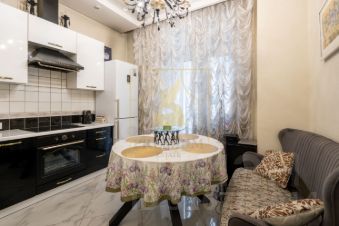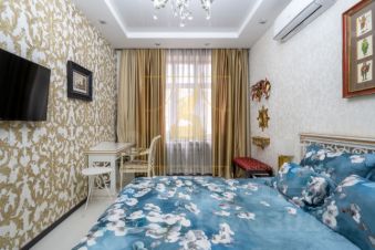 В квартире сделан дизайнерский ремонт, который подчёркивает её стиль и уют. Кухня площадью 10 кв. м оснащена всей необходимой мебелью и техникой: холодильником, телевизором и кондиционером. В комнате также есть вся необходимая мебель для жизни. Ванная комната оснащена ванной. Окна выходят как во двор, так и на улицу, поэтому в квартире всегда светло.