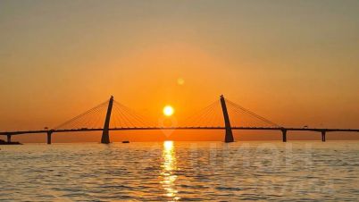 Панорамный вид на Финский залив и Лахта Центр.