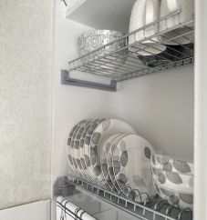 - Полностью наполненная кухня: посудомоечная машина, плита, духовка, микроволновая печь, чайник, кофемашина, турка, вся прочая необходимая кухонная утварь для приготовления еды. Чай, кофе, сахар, бутилированная вода