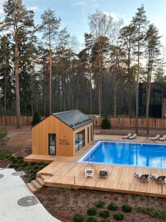 На закрытой охраняемой территории есть спортивная и детская площадки, открытый подогреваемый бассейн с температурой воды +33, детская комната, парковка. В ближайшее время откроется спа.