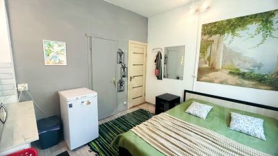 Сейчас мы только планируем ее дизайнерское перевоплощение, начнём реализацию осенью. А пока мы сделали простой ремонт своими силами и предлагаем вам остановиться у нас по сниженной цене - одной из самых выгодных на Васильевском острове .