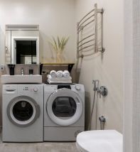 • бытовая техника (плита, холодильник, чайник, кофеварка, микроволновка, стиральная и сушильная машины)