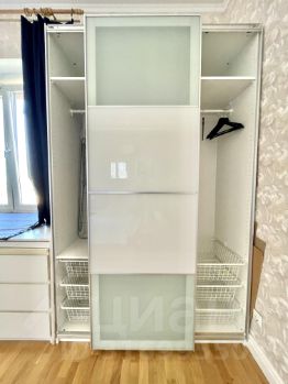 двуспальная кровать с ортопедическим матрасом, раскладной диван, шкаф-купе для хранения вещей, стиральная машина, однокамерный холодильник, духовой шкаф, СВЧ, индукционная плита, вытяжная вентиляция, эл.чайник.