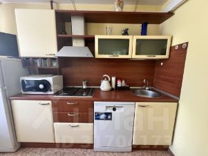 Квартира полностью меблирована и готова к заселению. На кухне и в комнате есть вся необходимая мебель, а также бытовая техника: холодильник, посудомоечная машина, телевизор и стиральная машина. В ванной комнате установлена ванна. Планировка квартиры удобная и функциональная, что делает проживание здесь комфортным.