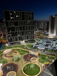 Современный микрорайон с красивыми пешеходными зонами, фонтанами, зонами отдыха, ландшафтным дизайном.
