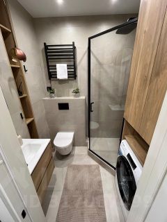 Плитка керамогранит, фильтры очистки воды, немецкие обои. Много точек освещения с включениями разных зон. Скрытая вентиляция, система пожаробезопасности.