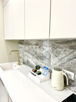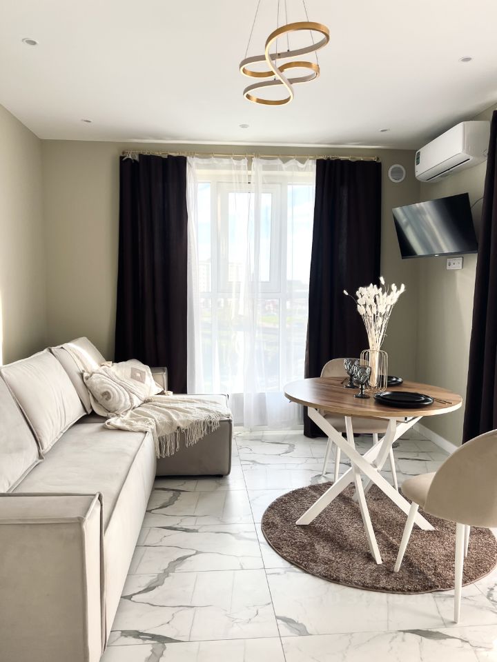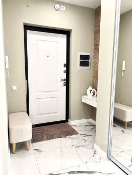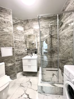Квартира полностью обустроена для вашего комфортного пребывания. Полный комплект посуды и необходимая бытовая техника: посудомоечная и стиральная машина, духовой шкаф, индукционная варочная поверхность.