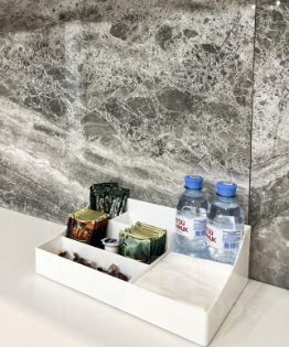 Для вашего комфорта также вас ждет приветственный набор (чай, кофе) и гигиенический набор (мыло, шампунь, гель,для душа , кондиционер , одноразовые зубные щетки, одноразовые тапочки )