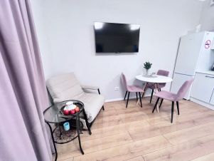 Уютная квартира - студия в новом доме, все новое! Квартира оснащена всем необходимым для комфортного проживания: мебелью, техникой, интернетом, постельным бельём, полотенцами, средствами гигиены и посудой..