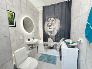 Удобная кровать с ортопедическим матрасом, большой смарт ТВ, ванна, красивый балкон.