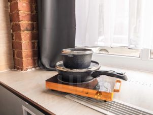 - Бытовая техника:стиральная машина, плита, холодильник, микроволновая печь, электрочайник, фен, утюг.