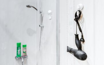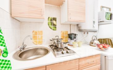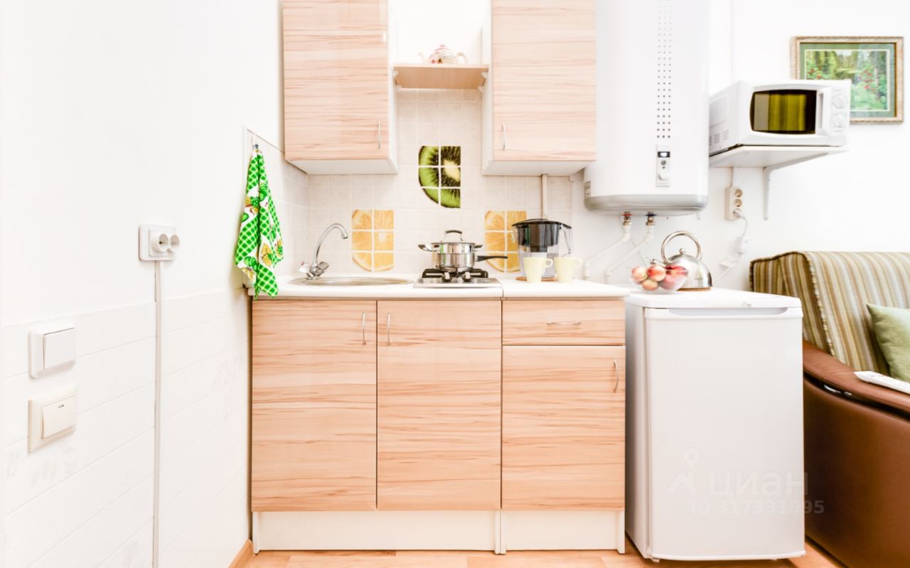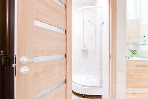 - первый уровень 11 м.кв., на нем находятся: диван ( можно использовать как односпальное место) , санузел с душем с подогревом пола, своя кухня со всем необходимым для готовки,