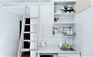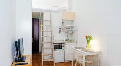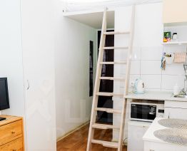 Окна выходят на тихий двор. Гостям предлагается размещение в студии с телевизором с плоским экраном, очень удобная кровать ИКЕА ,кухонный гарнитур, стол обеденный, стулья, светильник, электроплита! холодильник, микроволновка, чайник, шкаф, комод. вся необходимая посуда, столовые приборы и домашняя утварь, фен В ванной комнате находится душ, раковина, туалет. -установлена стиральная машина-автомат, утюг и гл.доска.