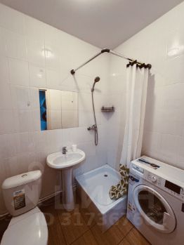 -Санузел - раковина, зеркало, туалет, душевой поддон, стиральная машина.