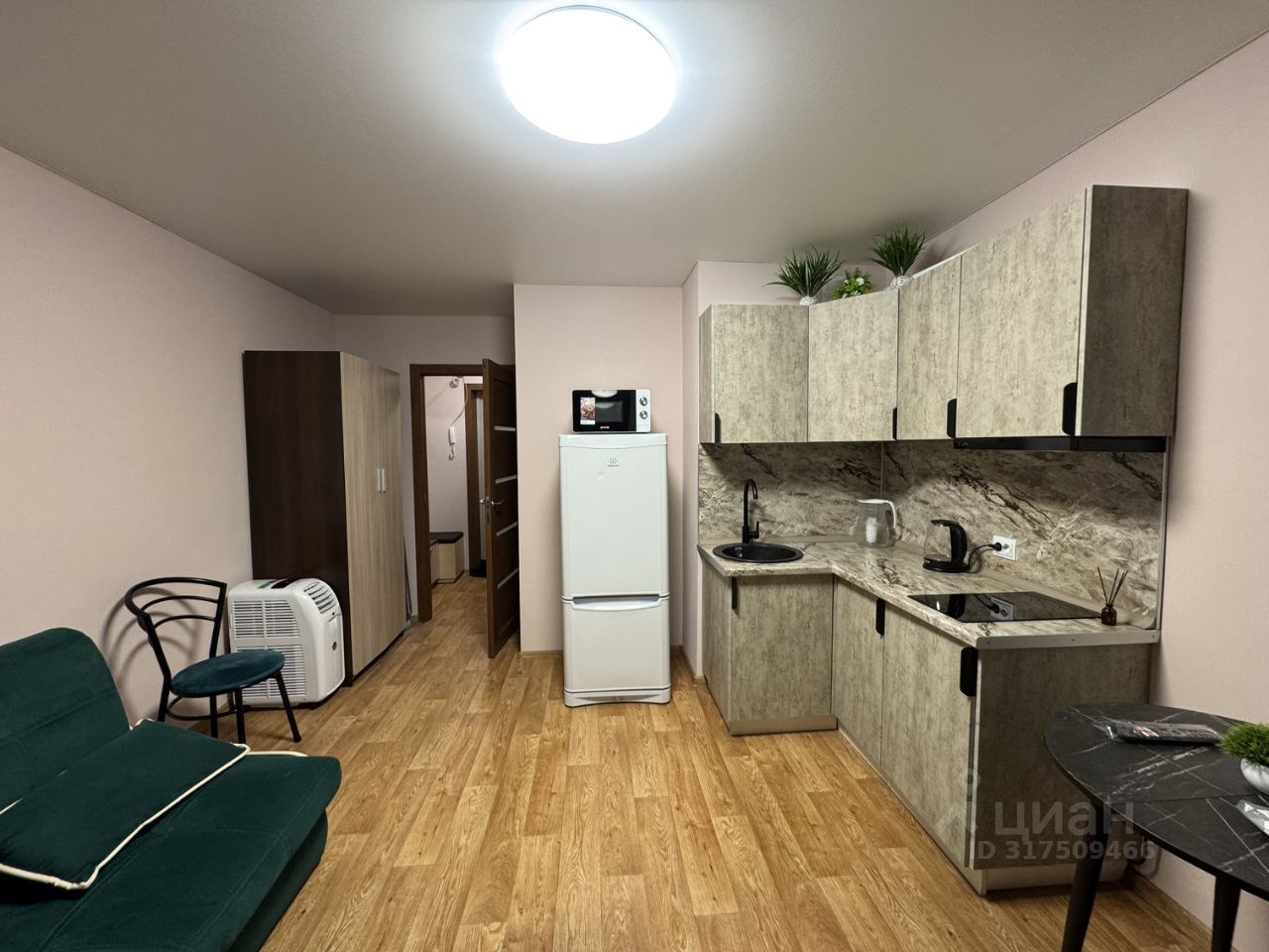 Оборудована всем необходимым для удобного и комфортного проживания: новая бытовая техника ( холодильник, стиральная машина, микроволновка), кухонная мебель и раздвижной двухспальных диван.
