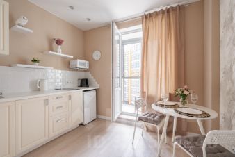 • светлая красивая кухня оснащена всем необходимым для приготовления еды и самой трапезы: варочная поверхность, холодильник, микроволновая печь, кофемашина, чайник и посуда;