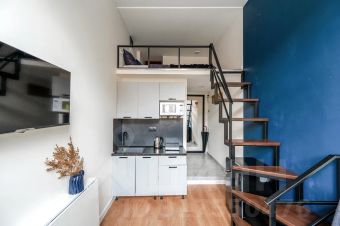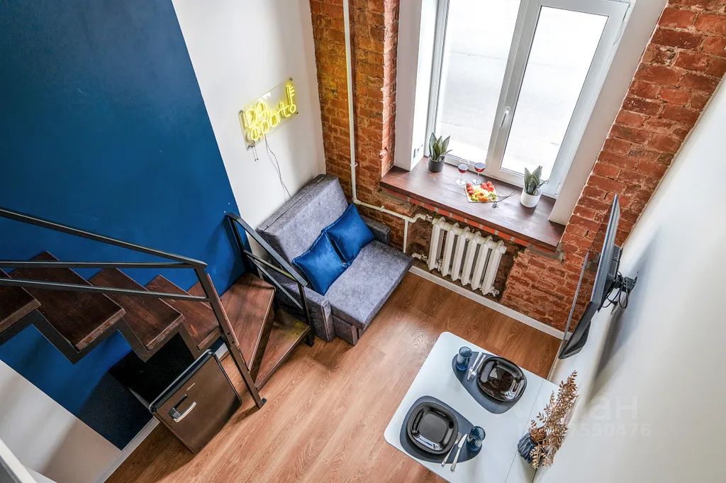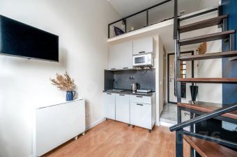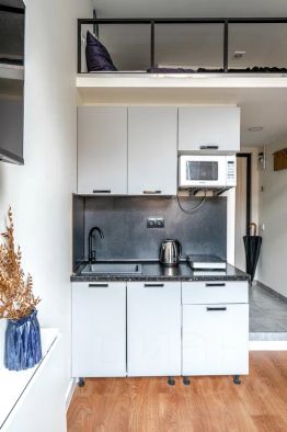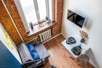 Двухуровневая студия в историческом центре Санкт-Петербурга. Первый уровень — 11 м2; второй уровень — 8 м2, высотой 1,2 метра. Студия вмещает до 3-х гостей!
