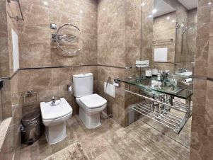 Два совмещенных санузла с ванной и душевой кабиной, один гостевой санузел.