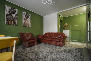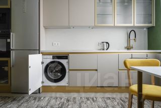 Кухня-гостиная: Полностью оборудованный кухонный гарнитур: встраиваемая кофемашина, посудомойка, стиральная машина, духовой шкаф + микроволновка и всей необходимой посудой для приготовления, обеденный стол и стулья; угловой диван из эко-кожи раскладывается в 2 спальных места, тв. Выход на террасу из гостиной.