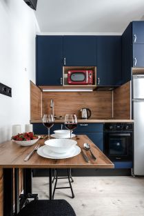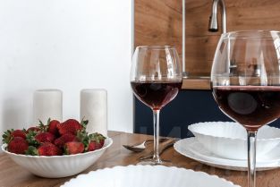Полностью оборудованная кухня, где есть все для хранения и приготовления пищи: холодильник, варочная поверхность, микроволновка, духовой шкаф, электрический чайник, вся необходимая посуда, столовые приборы.