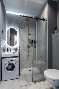 Все для поддержания чистоты: стиральная машина, сушилка для белья, утюг, фен, гладильная доска, пылесос.