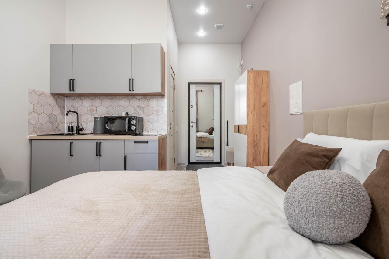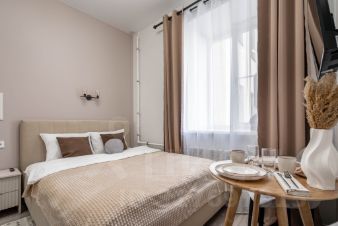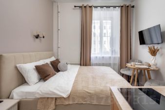 Современное оснащение: В студии есть все необходимое для комфортного проживания: новая мебель, полностью оборудованная кухня, высокоскоростной Wi-Fi, ЖК-телевизор, стиральная машина, фен.