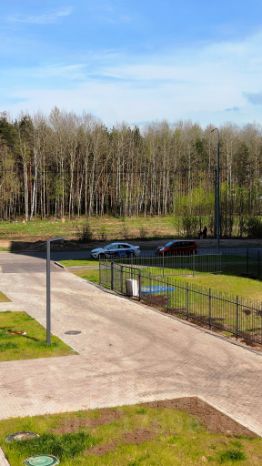 Тихий зеленый район с видом на лесопарк. Рядом ТРК Небо с кинотеатром, поликлиника, остановка общественного транспорта и метро в пешей доступности (есть альтернатива ж/д станция Лаврики в 1,6 км).
