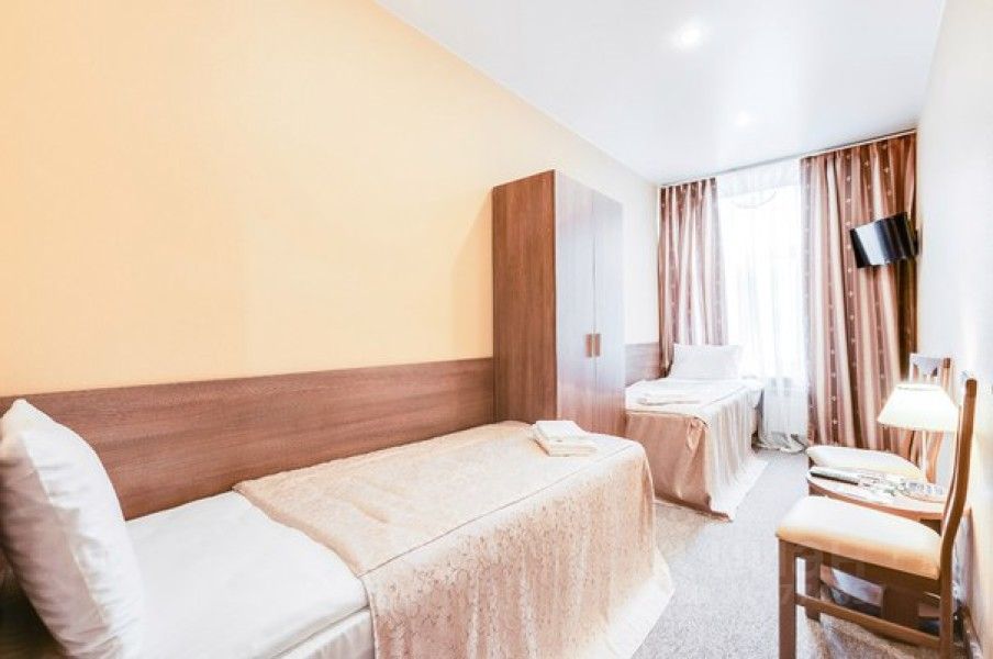 Двухместный номер с двумя односпальными кроватями. Без подселения! В номере есть шкаф, телевизор, столик, стулья. Окна выходят в тихий двор. Около отеля есть общественная парковка, что очень удобно, если вы путешествуете на машине.