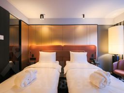 - Дизайн апартаментов VALO Mercure выполнен в густых оттенках серого, черного и терракотового цветов.