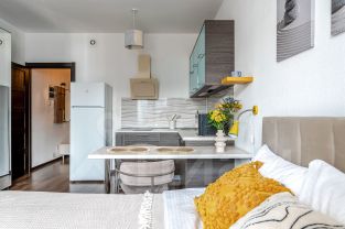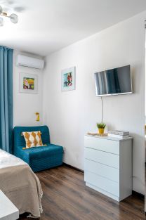 ~ В апартаментах присутствует совершенно новый ремонт, создающий атмосферу свежести и чистоты.