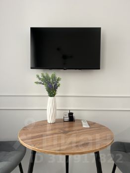 мебель: двуспальная кровать 160*200, обеденный стол, стулья, Smart TV 32 дюйма, шкаф.