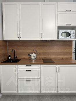 кухонный гарнитур: варочная панель, микроволновая печь, эл. чайник, холодильник, вытяжка.