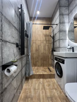 санузел: душевая с тропическим душем, зеркало с подсветкой, инсталяция, стиральная машина, бойлер для воды: горячая вода есть всегда.