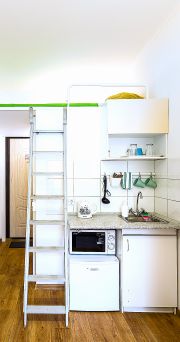Окна выходят на тихий двор. А также Гостям предлагается размещение в студии с телевизором с плоским экраном, очень удобная кровать ИКЕА ,кухонный гарнитур, стол обеденный, стулья, светильник, электроплита! холодильник, микроволновка, чайник, шкаф, комод. вся необходимая посуда, столовые приборы и домашняя утварь, фен В ванной комнате находится душ, раковина, туалет. -установлена стиральная машина-автомат, утюг и гл.доска. Есть доп спальное 2х спальное место на 2эт. ! бесплатный Wi-Fi. Возможность раннего заезда и позднего выезда! Камера хранения багажа! При себе необходимо иметь паспорт!