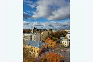 С балкона 8 этажа открывается панорамный вид на основные достопримечательности города: Выборгский замок (башню св. Олафа), часовую и башню ратуши, а также купола двух городских соборов.