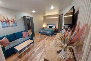 Квартира укомплектована всем необходимым для комфортного отдыха: постельное бельё и полотенца; средства и принадлежности для личной гигиены, установлена система фильтров для питьевой воды, на кухне есть вся необходимая посуда для приготовления пищи и сервировки стола. Вы сможете воспользоваться кабельным телевидением и подписками Okko и Кинопоиска.