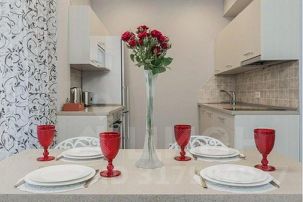 Две уютные изолированные спальни с удобными кроватями. Раздельный санузел. Кухня оборудована посудомоечной машиной, духовкой и всем необходимым для удобства и уюта.