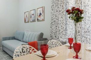 Квартира с удобной планировкой: светлая кухня-гостиная с теплыми полами и зоной отдыха напомнит итальянские патио.