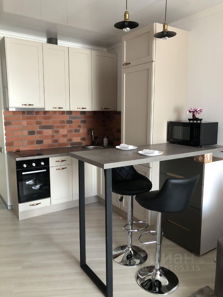 Кухня оснащена встроенной бытовой техникой, мелкой бытовой техникой и кухонной утварью. В студии комфортно могут расположиться до 3 человек.