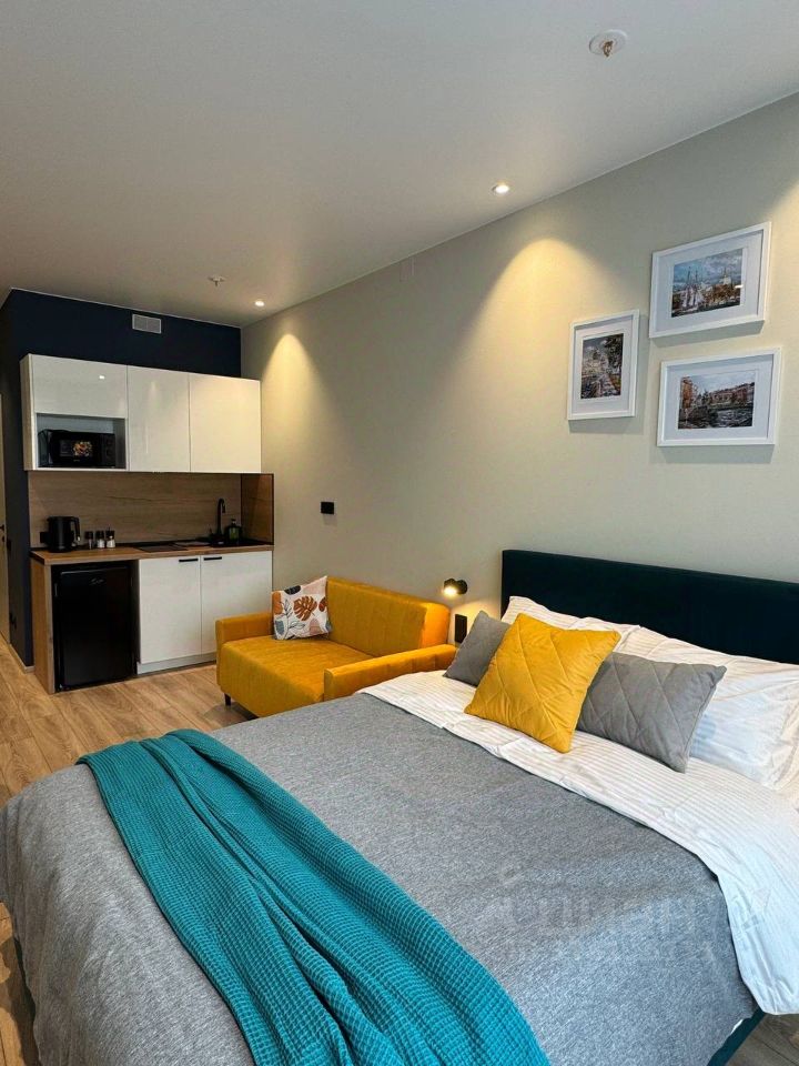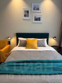 Наполнение: Двуспальная кровать Perrino 140x200 с ортопедическим матрасом от Аскона и диван 140х200. Функциональная кухня, оснащённая краном со встроенным фильтром для питьевой воды, холодильником с морозильной камерой, индукционной плитой, СВЧ-печью, электрическим чайником, посудой, столовыми и кухонными принадлежностями.