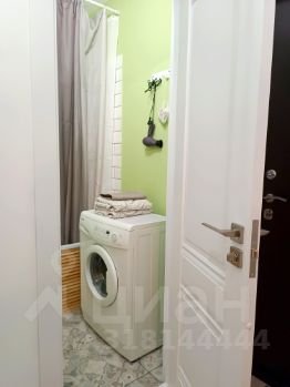 Ванная комната с ванной и стиральной машиной. Установлен бойлер.