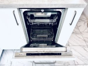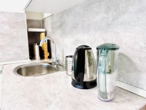 Полностью оборудованная кухня с посудой, посудомоечной машиной, духовым шкафом с функцией микроволновки, кофемашиной. Чай, кофе, сахар, специи, масло всегда в наличии.