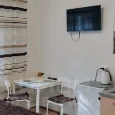 Есть всё необходимое для комфортного проживания - большая 2х сп.кровать, ортопедический матрас, постельное бельё, полотенца, бойлер, посуда, чайник, эл.плитка, микроволновка, холодильник, TV, стир.машина, WiFi. Чисто, тихо. Время заезда и выезда можно обсудить индивидуально.